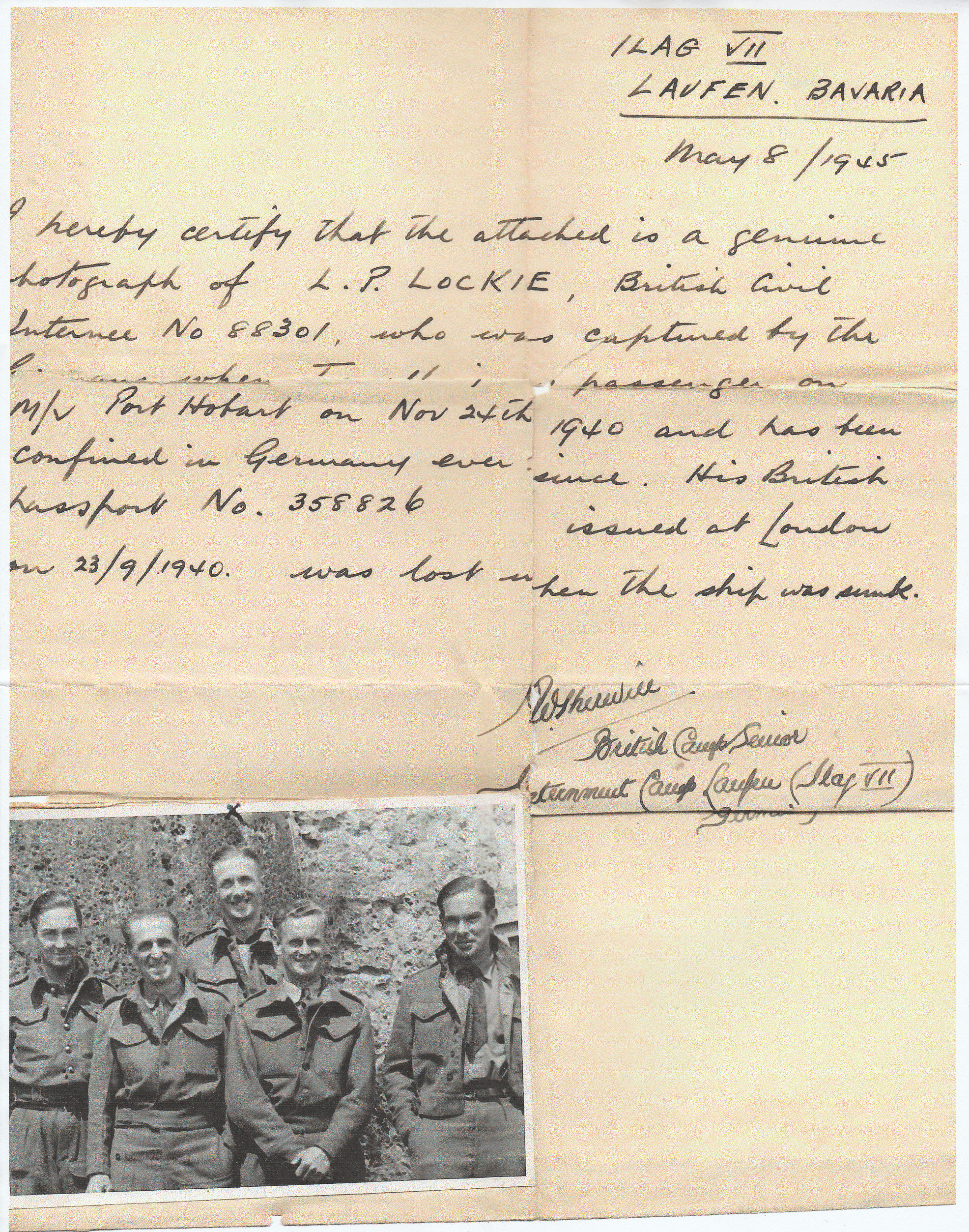 after the capture and sinking of MV Port Hobart, November 24th 1940, on which he was a civilian passenger.