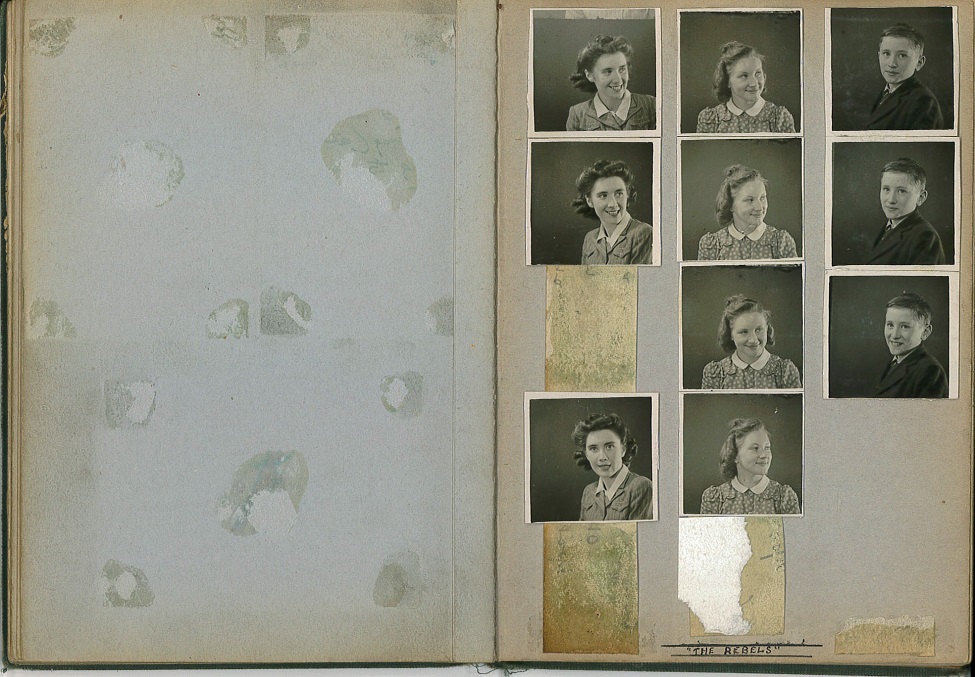 The following photos, labels and clippings were stored loose inside a pouch, attached to the inside rear cover.