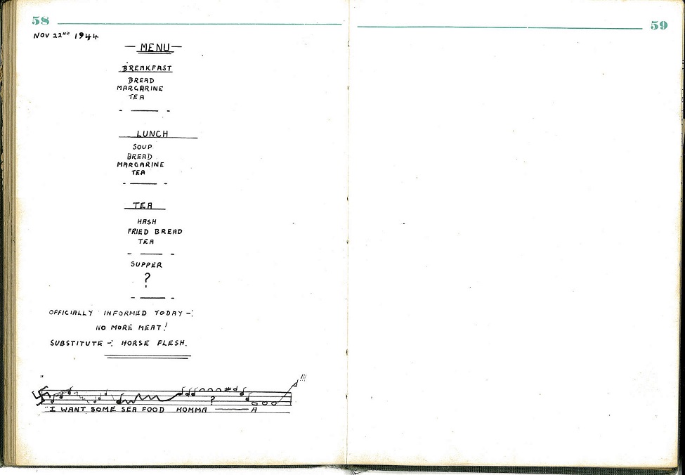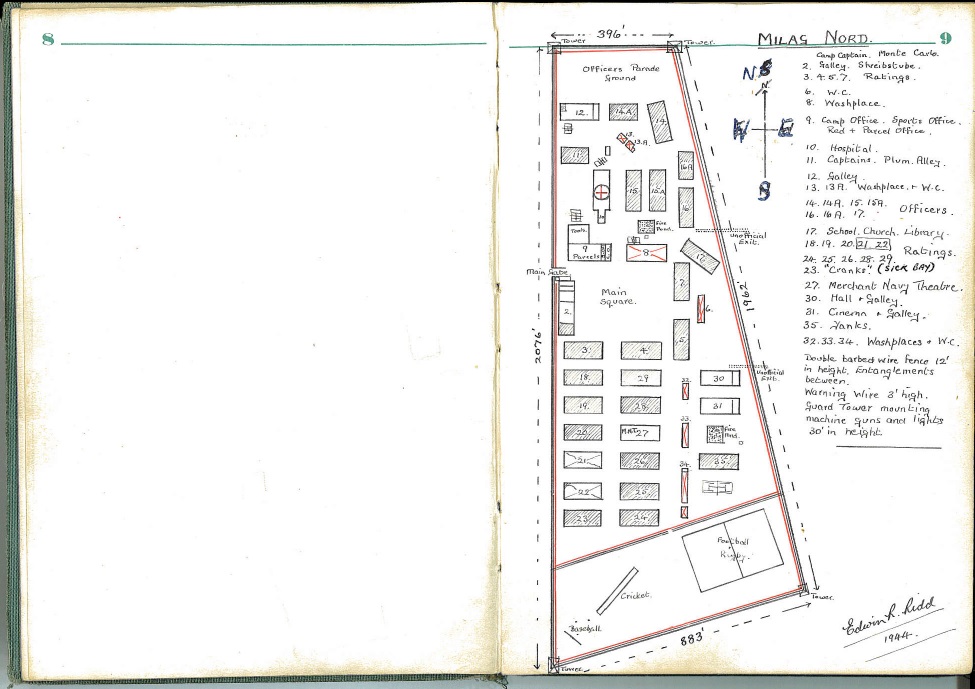 The following images are scans of the Wartime Logbook written by Patrick Brady in the Milag Nord Prison Camp, Westertimke, Germany, 1941-1945.